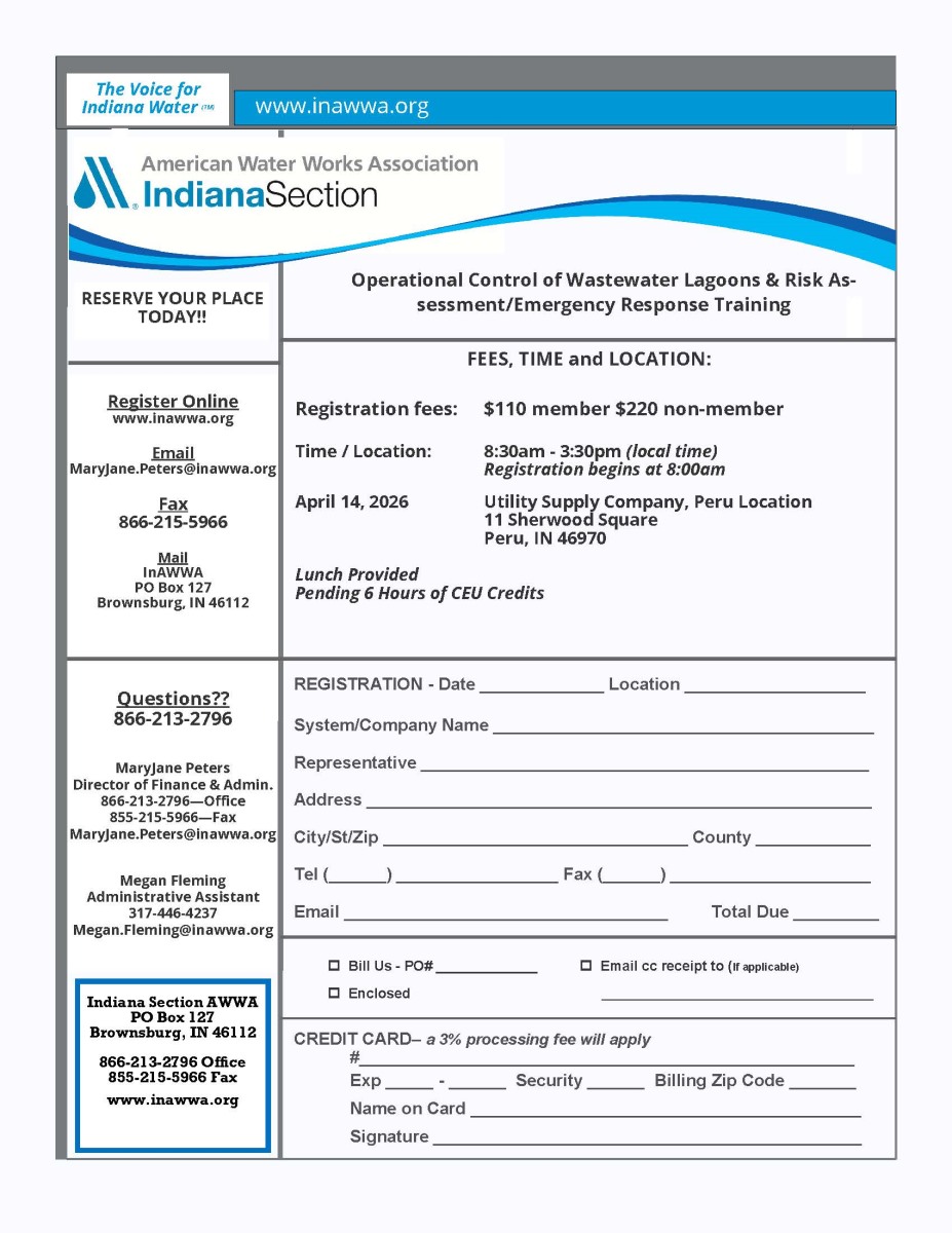 This training focuses on treatment principles, operational monitoring, troubleshooting, and preventative maintenance practices necessary to maintain permit compliance and system reliability of wastewater lagoons. Participants will review lagoon classifications, treatment mechanisms, oxygen transfer principles, algae bacteria symbiosis, and seasonal impacts including thermal stratification and turnover. The course also addresses loading rates, hydraulic retention time, sludge management, aeration system considerations, and common causes of effluent violations. Instruction includes practical field-based examples, visual demonstrations, and scenario discussions to reinforce application of concepts in operations. This training supports operator proficiency, regulatory compliance, and sustainable lagoon management practices for small and rural wastewater utilities.
